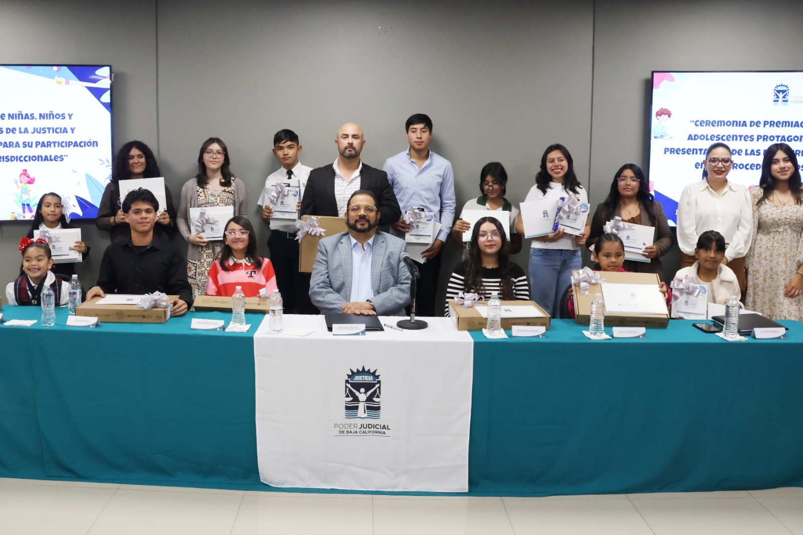 Mexicali, B.C. A 02 de diciembre de 2025. El Poder Judicial de Baja California a través de la Dirección de Derechos Humanos y Asuntos de Género, realizó la entrega formal de premios a las niñas, niños y adolescentes (NNA) que obtuvieron los primeros lugares en el concurso estatal de dibujo, carta y ensayo: Protagonistas de la Justicia.