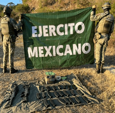 -En el municipio de Concordia, con trabajos de inteligencia, elementos del Ejército Mexicano inhabilitaron un campamento empleado por integrantes de la delincuencia organizada, donde aseguraron dos armas largas, 22 cargadores y 1,706 cartuchos.