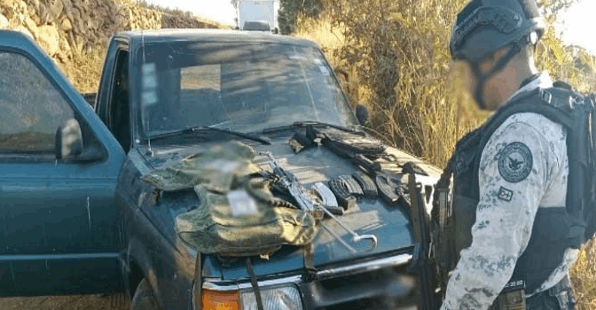 -En Culiacán, elementos del Ejército Mexicano localizaron un vehículo donde aseguraron dos armas largas y un arma corta.