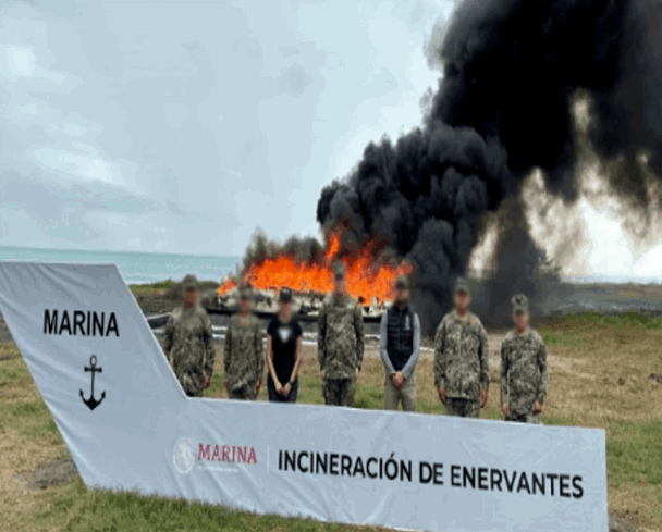 En Chilpancingo, Guerrero y San Juan Teotihuacán, Estado de México, elementos del Ejército Mexicano y FGR incineraron 702 kilos de marihuana, 58 kilos de metanfetamina, tres kilos de cocaína, un kilo de semilla de amapola, un kilo de semilla de marihuana, 0.06 kilos de heroína, 0.001 kilos de goma de opio, 13 plantas de marihuana, una planta de amapola y 674,180 pastillas psicotrópicas.
