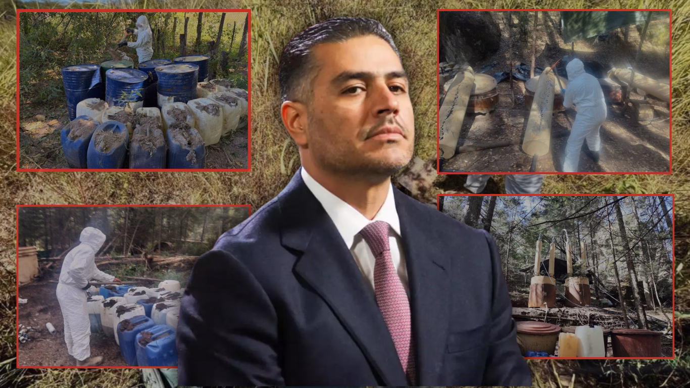 En ese estado, elementos del Ejército Mexicano aseguraron ocho mil 147 litros y mil 65 kilos de sustancias químicas, así como 19 reactores de síntesis orgánica, 24 destiladores y dos centrifugadoras.