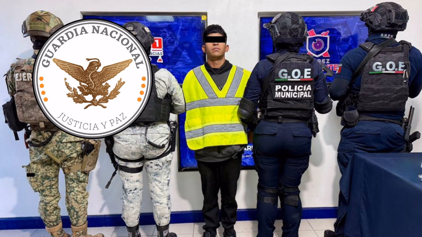 En Ciudad Juárez y Guachochi, Chihuahua, se capturó a dos individuos y se decomisaron un lanzacohetes, armas largas, cargadores, cartuchos, chalecos tácticos y drogas sintéticas.